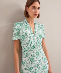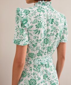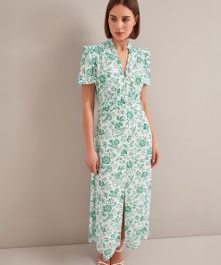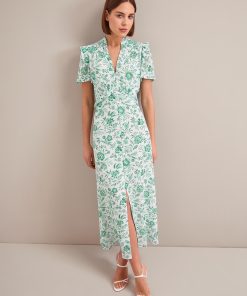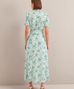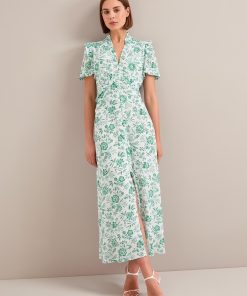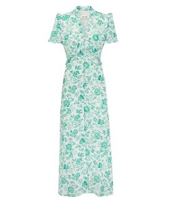 Liliana Cotton Blend Maxi Dress – Green Palm Floral Print