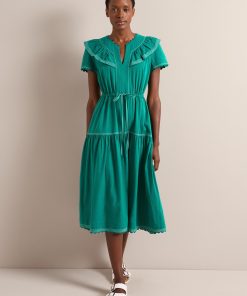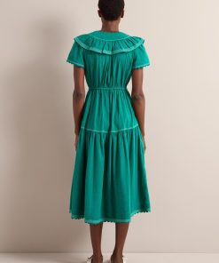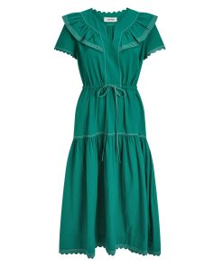 Nessa Cotton Seersucker Maxi Dress – Dark Green