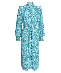 Stella Silk Midi Dress – Blue Green Feather Print